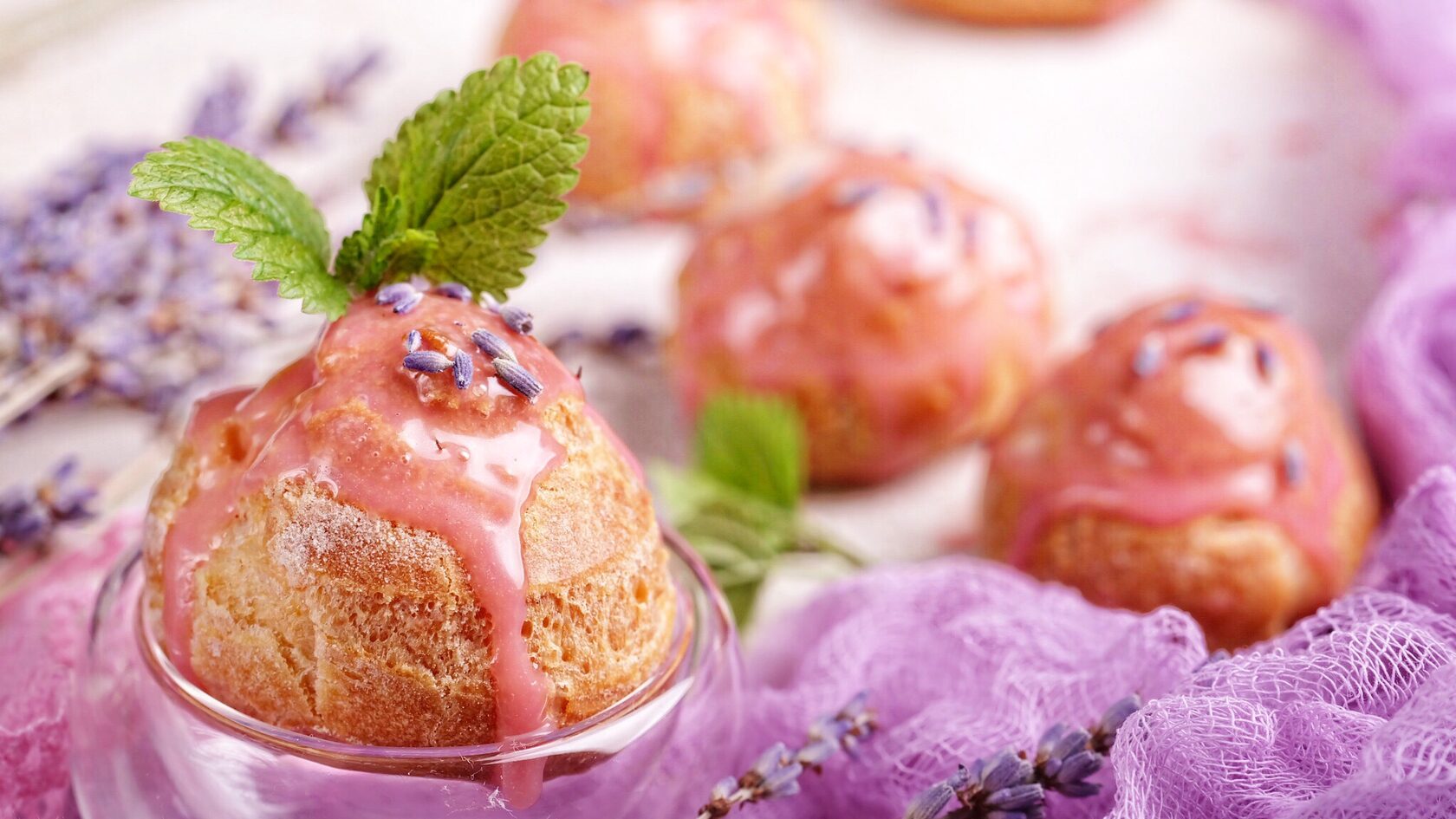 18. Профитроли готовы. Украсить по желанию. У меня — ганаш из клубничного шоколада Barry Callebaut и цветки лаванды.